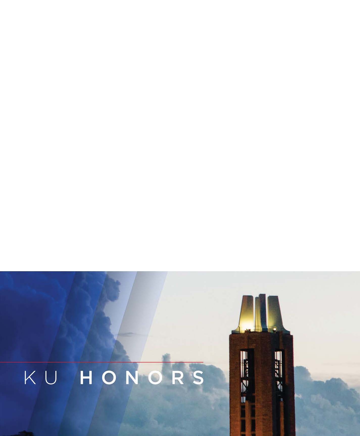 For the University of Kansas Honors Program, one of the most critical printed projects they produce is the Freshmen Orientation Packet. This folder, designed to contain the various elements of the packet, embodies the finalized brand design language I created for the program: gorgeous photography from the University’s marketing department takes center stage, accented by slanting bars of increasing transparency (a riff on another University design element), and the program’s name type treatment.Â